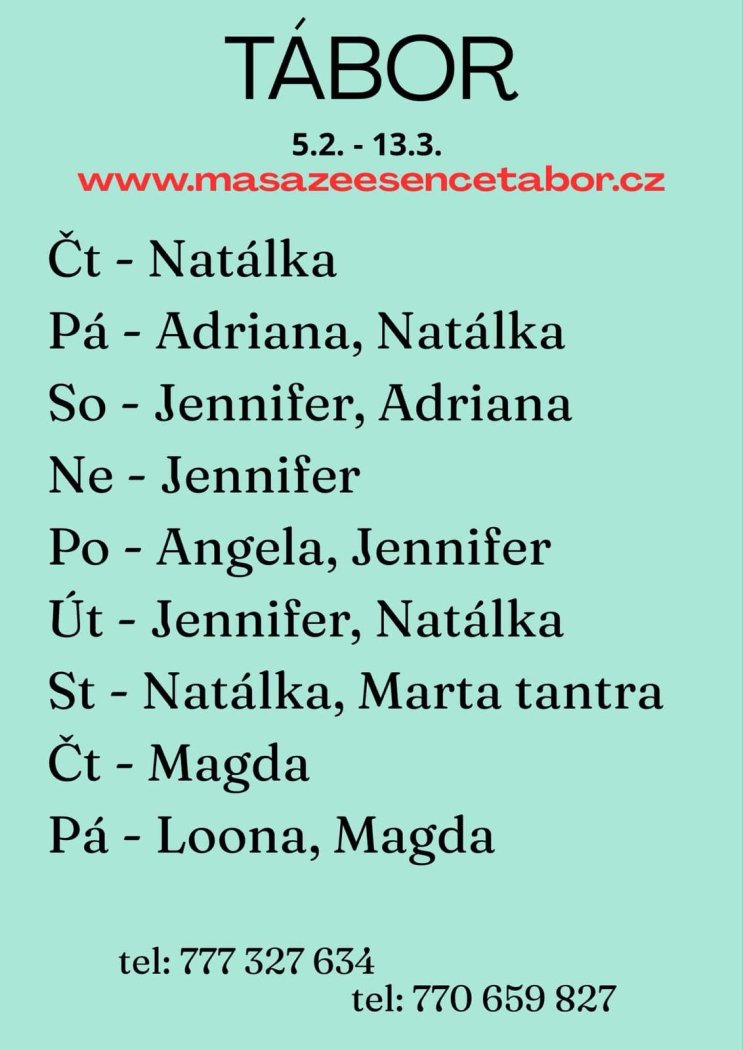 Vítám vás v salonu MASÁŽE ESENCE. Jsem SMYSLNÁ dívka co vás ráda potěší...